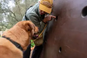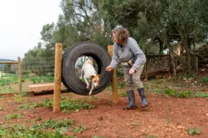 Dogs and their handlers will be able to train physically as well as mentally improve all kinds of skills in their dogs. Dogs will learn balance and coordination in our natural Agility Course, they will improve their senses with our challenging exercises in the forest and they will learn how to solve puzzles. During opening hours, you´re free to spend your time in our forest with your special golden member ship. Enjoy the forest ambiance, take the adventurous track and walk around in the shade of our beautiful trees. Find all the hidden treasures which give your dog and you a lot of fun! Meet other dog owners, train together, relax and enjoy. Challenge your dog to work on different exercises.